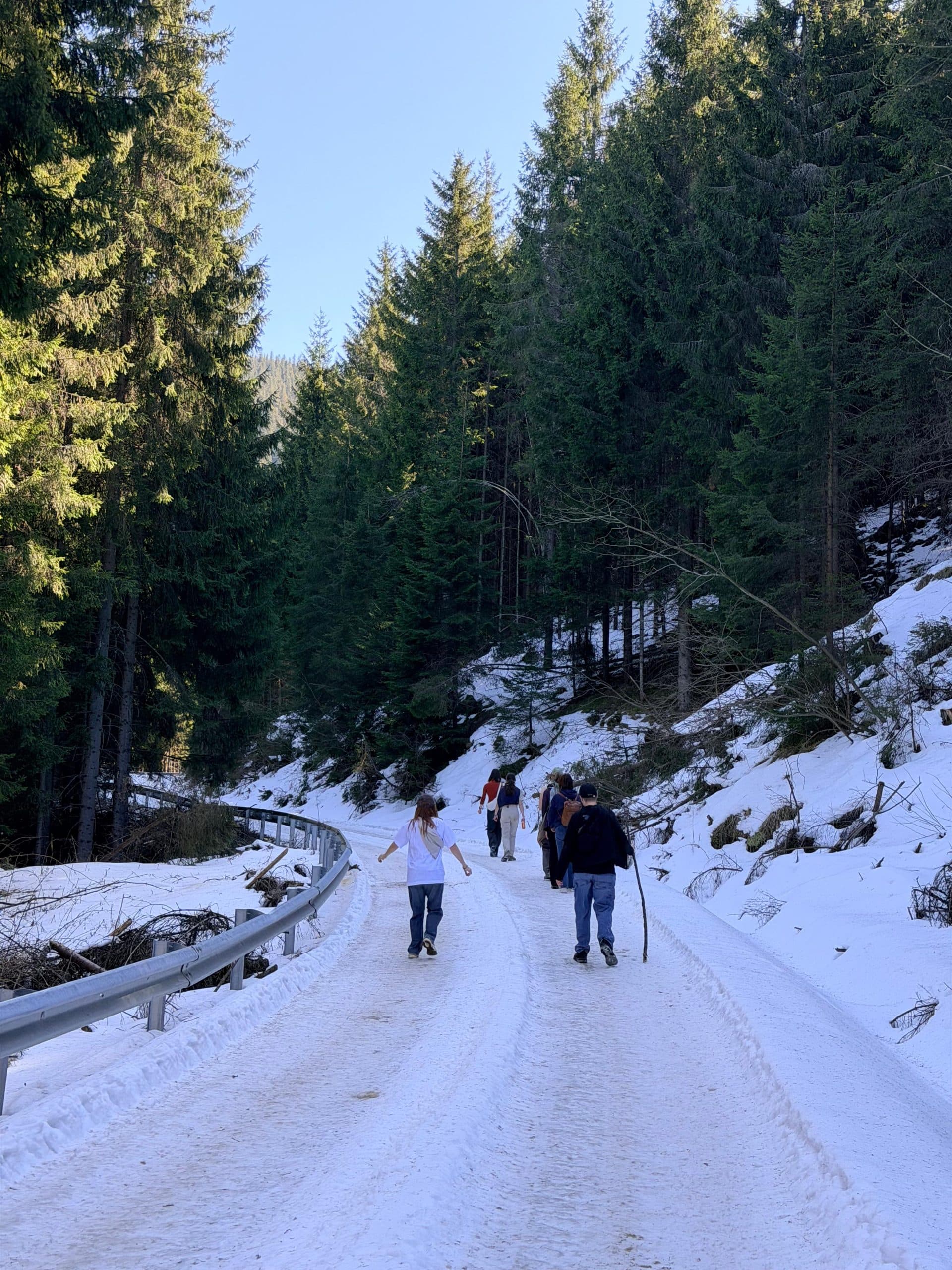 De dag daarna ben ik met een groepje gaan wandelen op een berg. Ook hier lag overal sneeuw en moest je goed oppassen waar je liep, omdat het pad bedekt was met ijs en sneeuw. Het weer was de hele week echt prachtig, met een heerlijk zonnetje!
